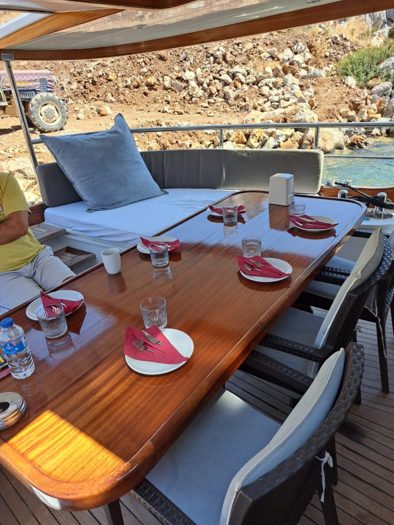 Masmavi düşlerinizi gerçeğe dönüştürmek için tasarlanmış 3 kabinli lüks guletimiz Hantur ile unutulmaz bir mavi tura hazır olun! Hantur, Ege ve Akdeniz’in en gözde rotalarını birleştirerek, Marmaris’in canlı atmosferinden Fethiye’nin doğal güzelliklerine, Çiftlik Koyu’nun sakinliğinden Bozburun’un el değmemiş doğasına, Selimiye’nin huzurundan Bodrum’un dinamik enerjisine uzanan eşsiz bir deneyim sunuyor.